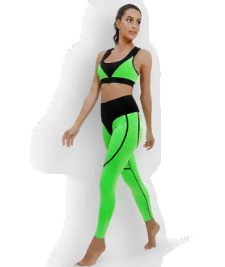 Este compus din bustiera cu bretele elegante și colanti lungi in aceleași doua nuanțe de albastru. Acest compleu este fabricat dintr-un material moale si elastic, care permite mobilitate și oferă confort în timpul activităților sportive.