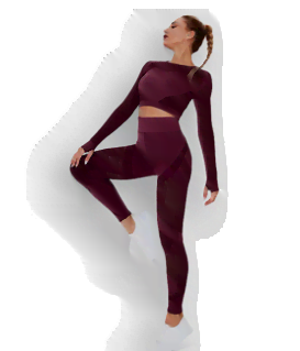 Acesta are un top scurt, dar cu maneci lungi si colanti lungi. Culoarea si designul modern inspira o stare de bine si chef de miscare.
